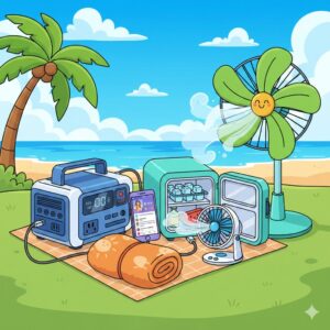 ポータブル電源があれば、スマートフォンの充電はもちろん、電気毛布やサーキュレーター、小型冷蔵庫などの家電製品も使用できます。特に冬場の電気敷毛布や、夏場の送風機器は快適性に直結します。