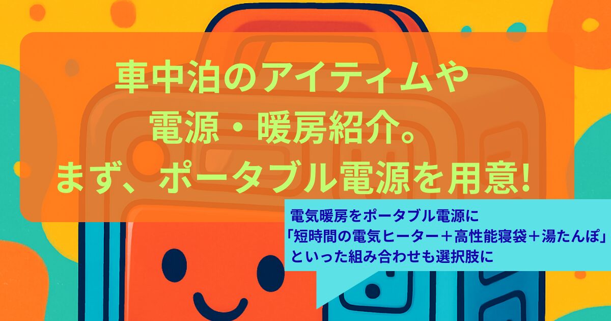 車中泊は自由度が高い反面、電力計算や寒暖対策など、事前準備が快適さを大きく左右します。特に暖房機器は消費電力と安全性を十分に理解したうえで選択することが大切です。長時間の電気暖房をポータブル電源だけでまかなうのは難しいケースが多いため、「短時間の電気ヒーター+高性能寝袋+湯たんぽ」といった組み合わせも現実的な選択肢になります。
