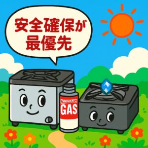 カセットコンロや燃料ストーブは換気の取れる場所で使用し、安全確保を最優先にしてください。