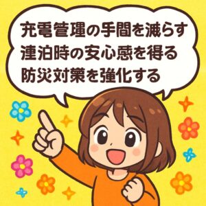 ポータブル電源があると、必要に応じてすぐ補充できるため、精神的な余裕が生まれます。