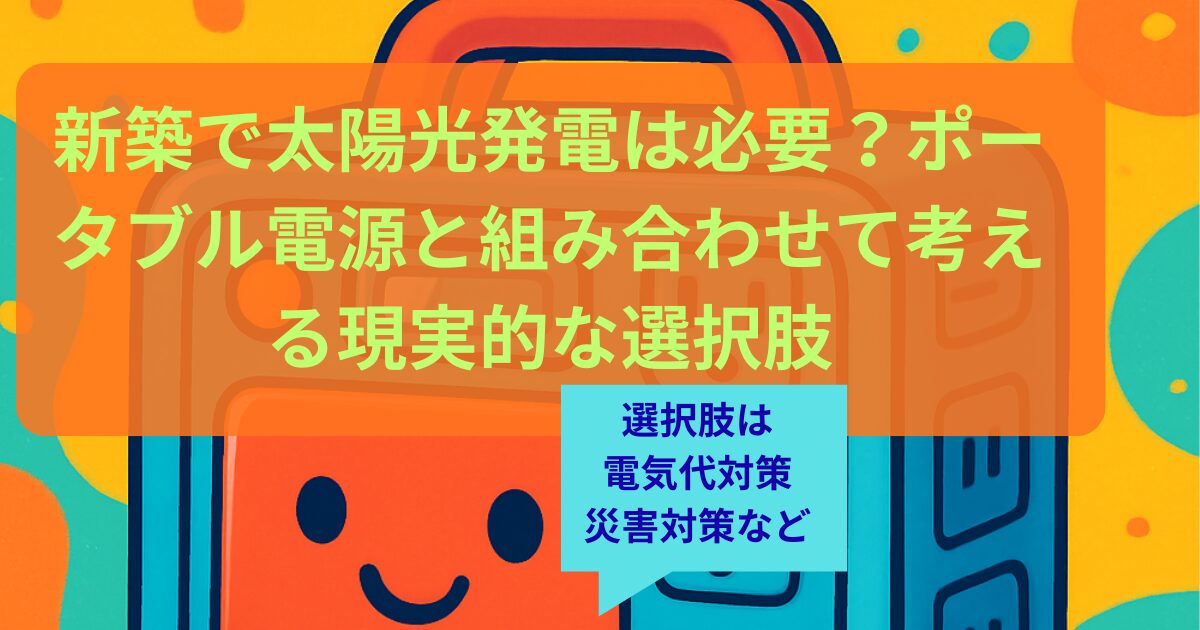 本記事では、蓄電池なし太陽光の考え方や、ポータブル電源との併用という選択肢について、安全面・法令面に配慮しながら解説します。